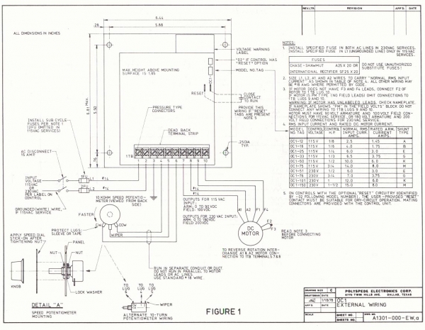 • 1/2 HP, 115 VAC, 6 Amps, OC1-50 Analog DC, Non Regenerative, DC Motor Drive