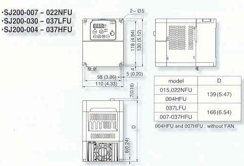 • 0.1 - 6000 sec. (linear/curve accel./decel.) Two stage accel./decel. setting available